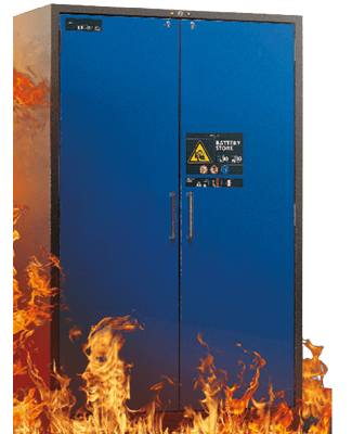 sind die Schränke von UDO BÄR zur Lagerung von Lithium-Ionen-Akkus/-Batterien sog. Typ 90-Modelle und somit nach EN 14470-1 feuerbeständig.