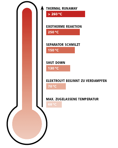 Es kommt zu dem gefürchteten „Thermal Runaway“ (einer thermischen Kettenreaktion)!