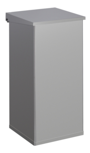 Die wichtigsten Maße des Abfallbehälters Carro Lift auf einen Blick:Zum Aufstellen auf dem Boden. Behälter feuerfest. Mit Klappdeckel - die Öffnung erfolgt manuell. Schließt gedämpft für eine ruhige Arbeitsatmosphäre. Einfache Entleerung über Deckel. Korpus aus Aluminium mit schlag- und kratzfester Pulverbeschichtung in grau. Deckel aus Aluminium in grau.