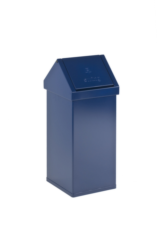 Die wichtigsten Maße des Abfallbehälters Carro Swing auf einen Blick:Zum Aufstellen auf dem Boden. Mit Schwingdeckel - die Öffnung erfolgt manuell. Einfache Entleerung über Kopfteil. Korpus aus Aluminium in blau. Deckel aus Aluminium in blau.