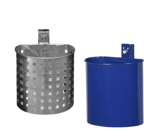 "description": "f. außen, 20l, HxØ 340x325mm, Wand/Pfosten, mit Drahtgitter, Korpus Stahl kobaltblau",
