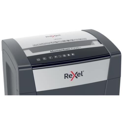 Die wichtigsten Maße des Aktenvernichters Momentum Extra P420+ auf einen Blick:Sicherheitsstufe: Die Sicherheitsstufe P-4 lässt keinen Streifenschnitt zu. Jeder Partikel darf an einer Seite höchstens 6 mm breit sein. Das erfordert für ein DIN A4-Blatt eine Zerkleinerung in mindestens 420 Teile. Leistung 500 W.