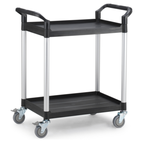 "longDescription": "<h2>Allzweckwagen</h2><strong>ideal für Lager- und Kommissionierbereiche</strong><br><ul><li><strong>Für eine bessere Körperhaltung</strong> mit höhenverstellbaren Schiebestangen ausgestattet</li><li><strong>Mit geringem Eigengewicht</strong> - Gestell aus Aluminium- <strong>Abrollsicher und leicht zu reinigen</strong> - Etagen aus Kunststoff mit Rand</li><li><strong>Besonders wendig</strong> durch 4 Lenkrollen, 2 davon mit Feststellern</li></ul>",