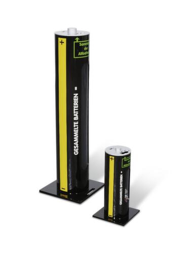 "metaDescription": "Altbatterie-Sammelbehälter, Inhalt 6 l - 6l, HxØ 375x140mm, Kunststoff in schwarz/gelb, m. Sichtscheibe, Bodenaufstellung",