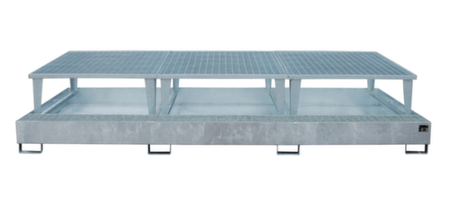 "longDescription": "<h2>Auffangwanne</h2><ul><li>Aus Stahlblech 3 mm stark, feuerverzinkt oder mit Lackierung</li><li>Unterfahrhöhe 100 mm für den Staplertransport</li><li>Abfüllaufsatz mit verzinktem Gitterrost</li></ul>",