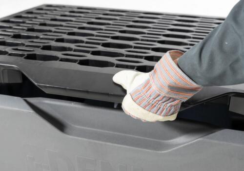 "description": "f. 2x200l Fass, Auffangvol. 220l, HxBxT 400x918x1314mm, m. Leckageanzeige, Gitterrost Kunststoff, Einfahrtaschen",