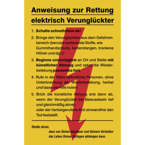 "value": "Anweisung zur Rettung elektrisch Verunglückter"
