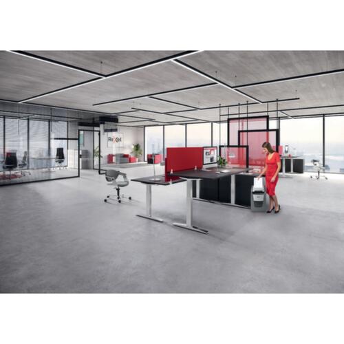 Funktionen: Touch Control ermöglicht einfaches und intuitives Bedienen. Die "autofeed"-Funktion ermöglicht es, einen ganzen Stapel Papier einzulegen, sodass einzelne Blätter nicht manuell hinzugefügt werden müssen. Nach einer gewissen Laufzeit ohne Unterbrechung sorgt der integrierte Lüfter für eine optimale Kühlung. Der Schlafmodus, der nach 3 Minuten Inaktivität aktiviert wird, unterstützt beim Energiesparen. Wenn der Auffangbehälter voll ist, wird dies dem Nutzer über den Infrarot-Sensor angezeigt. Über den herausziehbaren Innenbehälter lässt sich der Auffangbehälter für die Papierschnipsel einfach und restlos entleeren.