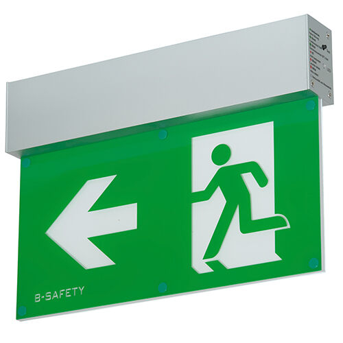 Merkmale:Aus Plexiglas, Gehäuse aus Aluminium. Schutzart IP40: Fremdkörper > 1mm, kein Wasserschutz. Funktionen: AUTOTEST-Funktion, Signalisierung über 2 LED, inklusive Prüftaster. Außerdem lässt sich die Leuchte von Dauer- auf Bereitschaftsschaltung umschalten.