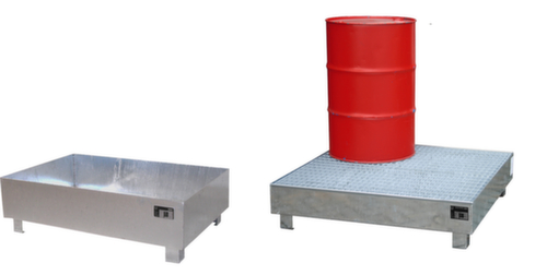 "metaDescription": "Bauer Auffangwanne für 200-Liter-Fässer - in verschiedenen Größen, mit oder ohne Gitterrost, Stahlblech",
