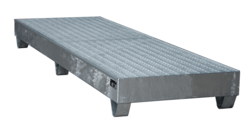"longDescription": "<h2>Auffangwanne</h2><strong>für die sichere Lagerung unter Dach</strong><br><ul><li>Geeignet für wassergefährdende und brennbare Stoffe</li><li>Robuste Stahlblechkonstruktion</li><li><strong>Für den Staplertransport geeignet</strong> durch praktische Unterfahrhöhe</li></ul><br><strong>Sie haben die Wahl:</strong><br><ul><li><strong>Langlebig oder auffällig</strong> - Oberfläche feuerverzinkt oder mit farbiger Lackierung</li><li><strong>Für noch mehr Auffangvolumen</strong> wahlweise mit herausnehmbarem Gitterrost</li></ul><br><strong>Bestimmungen!</strong><br><br>Bauweise der Wannen behördlich zugelassen. Einsatz für gewässergefährdende und entzündbare Stoffe zur Lagerung unter Dach.<br>",
