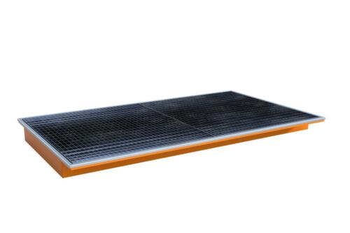 Mit der einhängbaren Auffangwanne rüsten Sie Palettenregale oder andere Regalsysteme schnell und gesetzteskonform für die Lagerung von Gefahrstoffen um. Im Gegensatz zu anderen Auffangwannen wird die Einhängewanne nicht unter das Regal, sondern direkt als eigene Ebene auf die Längstraversen aufgelegt. Durch den Überstand an den Längsseiten entsteht eine sichere Auflagefläche. Die Wanne ist damit zwischen den Längstraversen eingelassen und ein verrutschen ist nicht möglich.