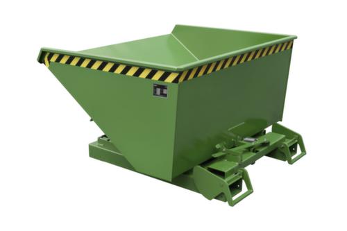 Die wichtigsten Maße des Bauer Kippbehälters 4A 600 auf einen BlickBeim Aufsetzen des Kippbehälters auf dem Containerrand löst der Auslösefuß die Entriegelung und setzt eine automatische Entleerung in Gang. So wird Ihr Arbeitsprozess bequem beschleunigt und erhöht die Sicherheit in Ihrem Betrieb. Das Abkippen erfolgt über 3 automatische Entriegelungspunkte, die ein stufenweises Entleeren des Inhaltes ermöglichen. Zusätzlich gewährleisten die Abrollkufen durch die Ausnutzung des Lastenschwerpunktes ein sanftes, staplerschonenden kippen. Nach der Entleerung schwenkt der Kippbehälter automatisch wieder in die Ausgangsposition zurück und die Kippsicherung rastet wieder automatisch ein. Hohe Stabilität durch umlaufende gekantete Randverstärkung und stabilen Grundrahmen. Robuste Konstruktion aus Stahl mit Lackierung in RAL6011 Resedagrün. Zum einfachen Transportieren und Entleeren nehmen Sie den Kippbehälter einfach mit dem Stapler über die Einfahrtaschen auf und bringen ihn auf die gewünschte Position und erforderliche Höhe.