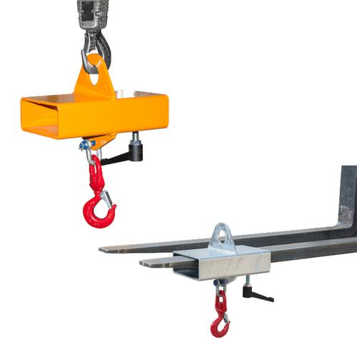 "description": "Tragl. 3000kg, HxBxT 465x300x180mm, f. 1 Gabelzinken, kranbar, Stahl, RAL2000",