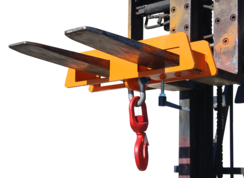 "longDescription": "<h2>Lasthaken-Aufsatz</h2><strong>Lasten sicher aufnehmen und transportieren</strong><br><ul><li><strong>Schnell einsatzbereit</strong> - zum Aufstecken auf Stapler-Gabelzinken</li><li><strong>Gegen ungewolltes Abrutschen von den Gabelzinken</strong> mit Sicherung ausgestattet</li><li><strong>Einfache Lastenaufnahme</strong> über Wirbellasthaken</li><li><strong>Robust und langlebig</strong> - stabile Stahlkonstruktion</li></ul><br><strong>Sie haben die Wahl:</strong><br><ul><li><strong>Langlebig oder auffällig</strong> - Oberfläche feuerverzinkt oder mit farbiger Lackierung</li><li>Zur Aufnahme mit einem oder zwei Gabelzinken</li><li>Wahlweise zur Kranaufnahme geeignet</li></ul>",