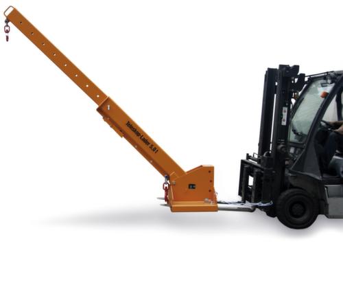 "longDescription": "<h2>Teleskop-Kranarm</h2><strong>funktioniert den Stapler in kurzer Zeit zu einem Kran um</strong><br><ul><li><strong>Sichere Handhabung</strong> - Endposition gegen Herausziehen gesichert</li><li>8-fach ausziehbarer, innenliegender Teleskoparm</li><li><strong>Einfache Lastenaufnahme</strong> über Wirbellasthaken</li><li>Mit Einfahrtaschen für die Gabelzinken</li><li><strong>Gegen ungewolltes Herausziehen und Abrutschen</strong> mit einer Kette gesichert</li><li><strong>Robust und langlebig</strong> - stabile Stahlkonstruktion</li></ul><br><strong>Sie haben die Wahl:</strong><br><ul><li><strong>Langlebig oder auffällig</strong> - Oberfläche feuerverzinkt oder mit farbiger Lackierung</li></ul>",