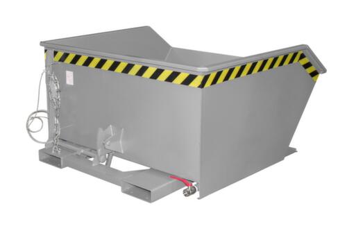 Die wichtigsten Maße des Bauer Kippbehälters auf einen BlickDer Kippvorgang wird bequem vom Fahrersitz aus per Zugseilentriegelung ausgelöst. Die besondere Anordnung des Drehpunktes sorgt für einen günstigen Kippwinkel und damit für eine schnelle und restlose Entleerung. Durch die Kippsicherung wird sichergestellt, dass der Behälter während des Transportes nicht unbeabsichtigt auskippt. Der Kippbehälter ist auch für die Aufnahme von Flüssigkeiten geeignet - öl- und wasserdicht verschweißt. Aufgefangene Flüssigkeiten, wie Öl oder Wasser, werden durch ein Sieb von den Feststoffen getrennt und können zeitsparend über ein Ablasshahn abgelassen werden, ohne den Container kippen zu müssen. Wände geschlossen. Hohe Stabilität durch umlaufende gekantete Randverstärkung und stabilen Grundrahmen. Mobil einsetzbar. Zum einfachen Transportieren mit Einfahrtaschen ausgestattet.