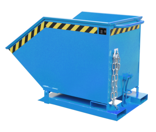 Die wichtigsten Maße des Bauer Kippbehälters auf einen BlickDer Kippvorgang wird bequem über eine Handgriff an der Rückseite manuell ausgelöst. Zum Schutz vor unbeabsichtigtem Auskippen rastet die Federkippsicherung beim Zurückführen des Behälters automatisch ein. Der Kippbehälter ist auch für die Aufnahme von Flüssigkeiten geeignet - öl- und wasserdicht verschweißt. Hohe Stabilität durch umlaufende gekantete Randverstärkung. Robuste Konstruktion aus Stahl mit Lackierung in RAL5012 Lichtblau. Zum einfachen Transportieren und Entleeren nehmen Sie den Kippbehälter einfach mit dem Stapler über die Einfahrtaschen auf und bringen ihn auf die gewünschte Position und erforderliche Höhe.