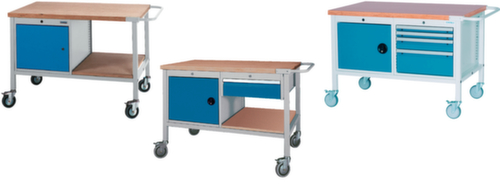 "title": "Bedrunka + Hirth Fahrbare Werkbank, 1 Schrank, 1 Ablageboden, RAL7035 Lichtgrau/RAL5012 Lichtblau",