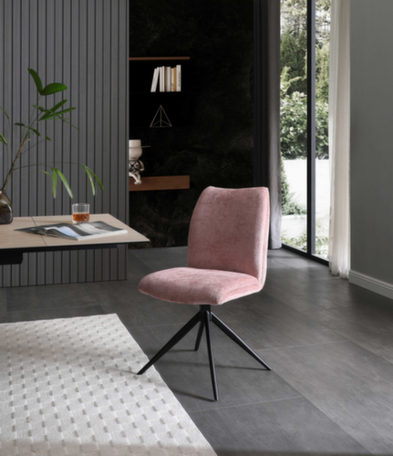 Ausstattung:Sternfußgestell aus Rundrohr-Stahl mit schlag- und kratzfester Pulverbeschichtung in schwarz. Sitz aus Hartschaum mit Polster. Sitzbezug aus Stoff (100% Polyester) in pastellpink. 360° drehbar.