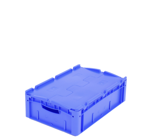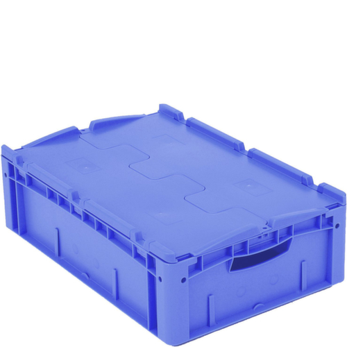 Maßlich auf die Europalette abgestimmt. Aus bruchsicherem Polypropylen in blau. Wände geschlossen, Boden geschlossen. Das Lagergut ist vor Staub und Schmutz geschützt durch den zweiteiligen Scharnierdeckel. Einfacher Transport durch Durchfassgriffe. Mehrfach stapelbar. Lebensmittelgeeignet. recycelbar.