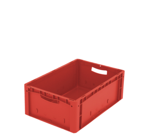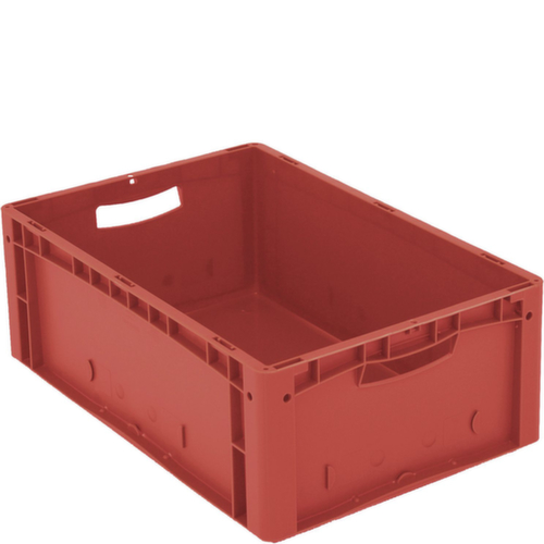 Maßlich auf die Europalette abgestimmt. Aus bruchsicherem Polypropylen in rot. Wände geschlossen, Boden geschlossen. Einfacher Transport durch Durchfassgriffe. Mehrfach stapelbar. Lebensmittelgeeignet. Temperaturbeständig -20 °C bis +80 °C. Geeignet für verschiedene Stoffe, bitte anfragen.