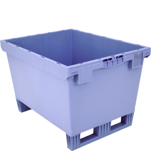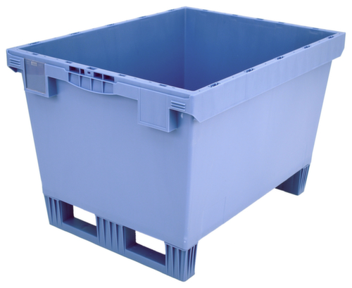 Im Euromaß. Aus bruchsicherem Polypropylen in taubenblau. Das Lagergut lässt sich durch die geschlossenen Wände vor Staub geschützt lagern und der Behälter lässt sich leicht reinigen. Boden geschlossen mit Verstärkung durch Doppelboden. Für das einfache Versetzen und Einfahren mit einem Stapler sorgen die Kufen. Platzsparend ineinander stapelbar. Für Rollenbahnen geeignet.