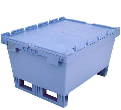 Im Euromaß. Aus bruchsicherem Polypropylen in taubenblau. Das Lagergut lässt sich durch die geschlossenen Wände vor Staub geschützt lagern und der Behälter lässt sich leicht reinigen. Boden geschlossen mit Verstärkung durch Verstärkungsrippen. Krokodildeckel. Für das einfache Versetzen und Einfahren mit einem Stapler sorgen die Kufen. Platzsparend ineinander stapelbar. Für Rollenbahnen geeignet.