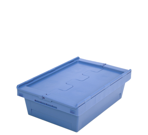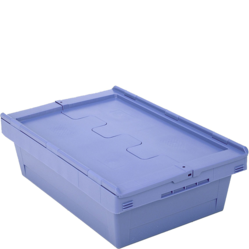 Im Euromaß. Aus bruchsicherem Polypropylen in taubenblau. Das Lagergut lässt sich durch die geschlossenen Wände vor Staub geschützt lagern und der Behälter lässt sich leicht reinigen. Boden geschlossen. Das Lagergut ist vor Staub und Schmutz geschützt durch den zweiteiligen Scharnierdeckel. Mit offenem Deckel ineinander stapelbar. Für Rollenbahnen geeignet. Temperaturbeständig von -20 °C bis +80 °C.
