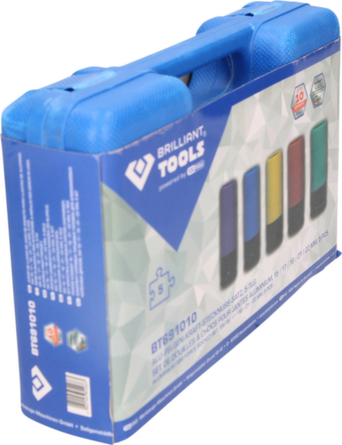 "longDescription": "<ul><li class=\"liste\">5-teiliger Satz</li><li class=\"liste\">robuster Stecknuss-Satz</li><li class=\"liste\">extrem hohe Qualität</li><li class=\"liste\">für Schlagschrauber geeignet</li><li class=\"liste\">15 mm, 17 mm, 19 mm, 21 mm, 22 mm</li></ul><br />Der sehr robuste BRILLIANT TOOLS Alu-Felgen-Kraft-Stecknuss-Satz BT691010 sollte in keiner Garage oder Werkstatt fehlen. Die extrem hohe Qualität und Standfestigkeit wird durch speziellen Chrom-Molybdän Stahl erreicht, welcher Sie auch bei härtesten Einsätzen nicht im Stich lässt. Die sehr gute Verarbeitung garantiert passgenauen Sitz und hohe Kraftübertragung. Schlagschrauber oder Ratsche, für beide Antriebe sind die Stecknüsse bestens geeignet.<br /><br />UNSERE QUALITÄT: BRILLIANT<br />UNSERE PREISE: SMART<br /><br />In jedem Werkzeug steckt mehr als ein viertel Jahrhundert Erfahrungen unserer Experten. Diese kompromisslose Qualität, Profi-Werkzeuge mit höchster Qualität für den harten Arbeitsalltag, ist eines der Erfolgsrezepte für uns. Wir verzichten auf eine große Vertriebsstruktur und extravagante Marketing-Aktivitäten und können Dir die Produkte daher zu einem sensationell günstigen Preis-/Leistungsverhältnis anbieten. Spare bares Geld ohne Deine Qualitätsansprüche herunterzuschrauben!<br /><br />Ein Qualitätswerkzeug powered by KS TOOLS.<br /><br><br><strong>Enthaltene Teile:</strong><br>- 1 x 1/2\" Alu-Felgen-Kraft-Stecknuss, 15 mm<br>- 1 x 1/2\" Alu-Felgen-Kraft-Stecknuss, 17 mm<br>- 1 x 1/2\" Alu-Felgen-Kraft-Stecknuss, 19 mm<br>- 1 x 1/2\" Alu-Felgen-Kraft-Stecknuss, 21 mm<br>- 1 x 1/2\" Alu-Felgen-Kraft-Stecknuss, 22 mm<br>",