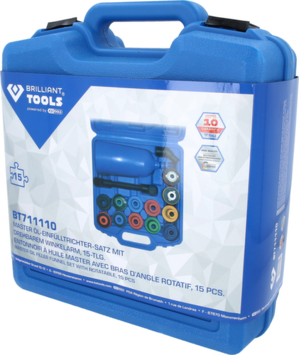 "metaDescription": "Brilliant Tools MASTER Öl-Einfülltrichter-Satz mit drehbarem Winkelarm - 15-tlg",