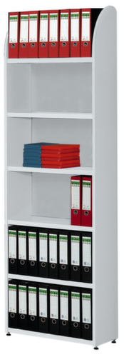 Die wichtigsten Maße des Büroregals auf einen Blick:Aktenordner und anderes Arbeitsmaterial werden auf 6 Ebene(n) mit Stahlboden übersichtlich organisiert und sind immer schnell im Zugriff. Nutzung einseitig - zur Aufstellung an der Wand konzipiert. Rückwand geschlossen. Konstruktion aus Holz und Stahl. Korpus mit pflegeleichter Melaminharzbeschichtung in RAL7035 Lichtgrau. Ebenen mit schlag- und kratzfester Pulverbeschichtung in RAL7035 Lichtgrau. Seitenwangen mit Höhennivellierfüßen zum einfachen Ausgleich von Bodenunebenheiten.