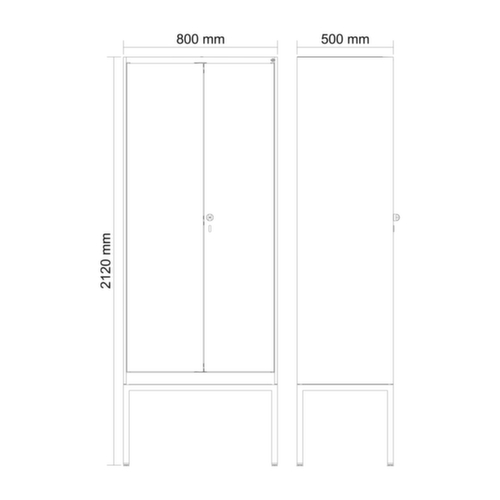 Die wichtigsten Maße des C+P Garderobenschranks Evolo PLUS auf einen Blick:Je Abteil ein festverschweißter Hutboden und darunter eine Kleiderstange mit 3 verdrehsicheren Doppelschiebehaken. Die Doppel-Flügeltüren können über den Comfort-Etikettrahmen ganz einfach personalisiert werden. Dank des Desinglochbildes, was essentiell zur Belüftung beiträgt, bleibt der Schrank trotzdem in seinem gesamten Erscheinungsbild glatt, hygienisch und leicht zu reinigen. Die innenliegenden Drehbolzen der einschlagenden Türen bieten den Vorteil einer sauberen Optik, da keine Schrauben oder Scharniere von außen sichtbar sind. Dadurch wird das Design des Schrankes nicht beeinträchtigt und das gesamte Möbelstück wirkt hochwertiger. Damit ist auch die glatte Oberfläche leichter zu reinigen, da keine Schmutz- oder Staubablagerungen an unzugänglichen Stellen zu befürchten sind. Jede Tür ist serienmäßig mit einer Anschlagsdämpfung ausgestattet, so dass, auch durch ein schwungvolles Schließen, die Tür nicht zuknallt. Das trägt nicht nur zu einer angenehmeren Geräuschkulisse bei, sondern schont auch den Stahlschrank vor Beschädigungen. Von der Natur inspiriert schafft der BIONIC Steel Frame eine besonders effiziente und stabile Konstruktion. Durch eine raffinierte innere Struktur aus Faltungen, Streben und Zwischenräumen, sowie höhere Materialstärke an entscheidenden Stellen, wie z. B. im vorderen Bereich der Seitenwände und in den Trennwand- und Kastenprofilen, wird die Verwindungssteifigkeit zusätzlich erhöht. Pro Person stehen 2 Abteile zur Verfügung, die über die zueinander schlagenden Türen gemeinsam verschließbar sind. Dadurch ist eine strikte und saubere Trennung von Arbeits- und Alltagskleidung ganz einfach möglich. Das durchdachte Selbstbelüftungskonzept ermöglicht einen konstruktiv optimierte Luftzirkulation. Definierte Lüftungsfreiräume vor und hinter dem Ablageboden, Lüftungsöffnungen in Abteilboden und -dach, in Kombination mit dem Lochbild in der Tür, tragen zu einer angenehmen Strömungsverlauf bei. . Dadurch wird der Schrankinhalt ausreichend belüftet und trocknet schneller, ohne unangenehme Gerüche zu verursachen. Das untergebaute Fußgestell reduziert mögliche Ansammlungen von Schmutz und Staub, da eine vollflächige Reinigung einfach möglich ist. Zudem wird zusätzlicher Stauraum unter dem Schrank geschaffen. Schuhe und Taschen stehen nicht mehr im Raum und stellen weniger Stolpergefahr dar. Konstruktion aus Stahl, stabil verschweißt. Das macht die Konstruktion besonders robust und widerstandsfähig und somit langlebiger. Die verschweißten Ecken und Kanten des Korpus gewährleisten eine höhere Dichtigkeit und somit eine bessere Schutzfunktion gegen Staub, Feuchtigkeit und Schmutz als eine geschraubte Konstruktion. Zudem sind keine regelmäßigen Wartungsarbeiten und Nachjustierungen nötig. Korpus mit Einbrennlackierung in RAL2406015 Architekturblau, Front mit Einbrennlackierung in RAL2406015 Architekturblau.