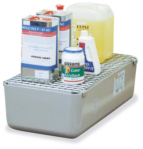 "longDescription": "<h2>Auffangwanne aus GFK</h2><strong>äußerst beständig gegen viele Öle und Flüssigkeiten</strong><br><ul><li>Geeignet für wassergefährdende, brennbare und ätzende Stoffe</li><li>Beständig gegen Mineral- und Synthetik-Öle, Brems- und Kühlflüssigkeiten, Laugen bis pH-Wert 8 und gegen die meisten Säuren</li><li><strong>Hoch stabil und korrosionsbeständig</strong> aus glasfaserverstärktem Kunststoff</li></ul><br><strong>Direkt mitbestellen:</strong><br><ul><li><strong>Mehr Flexibilität per Stapler</strong> - verzinktes Fußgestell für den Staplertransport für 2 x 200-Liter-Wanne</li></ul><br><strong>Sie haben die Wahl:</strong><br><ul><li><strong>Für noch mehr Auffangvolumen</strong> - wahlweise mit Gitterrost aus GFK oder verzinktem Stahl</li></ul><br><strong>Bestimmungen!</strong><br><br>Bauweise der Wannen behördlich zugelassen. Einsatz für gewässergefährdende, entzündbare (Flammpunkt > 55°C) und aggressive Stoffe zur Lagerung unter Dach.<br>",
