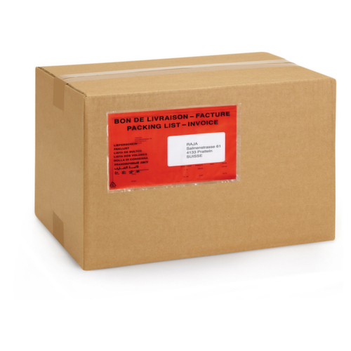 Die wichtigsten Maße der Begleitpapiertasche auf einen Blick:Aus 60 µm starkem Polyethylen mit Schutzpapier aus Silikon. Rückseite selbstklebend.