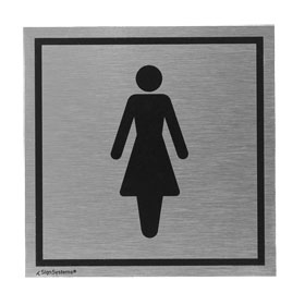"metaDescription": "Eckiges Türschild Tello, \"WC Damen\" - WC Damen, Alu, silber/schwarz, selbstklebend, HxB 110x110mm",