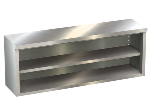 "longDescription": "<h2>Hängeschrank</h2><strong>mit durchgehender Wandbefestigungsschiene</strong><br><ul><li><strong>Solide und besonders stabil</strong> durch komplett verschweißte Konstruktion</li><li><strong>Rostfrei</strong> - aus Edelstahl (1.4301) mit matt geschliffener Oberfläche</li><li><strong>Individuelle Einrichtung</strong> dank höhenverstellbarem Fachboden</li></ul><br><strong>Sie haben die Wahl:</strong><br><ul><li><strong>Offen oder vor Staub geschützt geschlossen</strong> - wahlweise ohne Tür oder mit Schiebe- oder Doppelflügeltür</li></ul>",