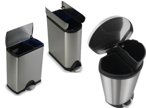 "title": "Edelstahl-Tretabfallbehälter mit 2 Sammeleinheiten",