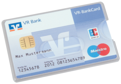 "longDescription": "<h2>Kreditkartenhülle</h2><strong>zuverlässiger Schutz und Griffsicherheit</strong><br><ul><li><strong>Universell einsetzbar</strong> für alle gängigen Karten im Kreditkartenformat</li><li><strong>Langlebig</strong> - aus robustem PVC</li><li><strong>Griffsicher</strong> sind Karten jederzeit dank optionaler Daumenstanzung, die als praktische Fingeraussparung fungiert</li></ul><br><strong>Sie haben die Wahl:</strong><br><ul><li><strong>Für zusätzliche Greifbarkeit</strong> auch mit Langloch auf der Vorderseite verfügbar</li></ul>",
