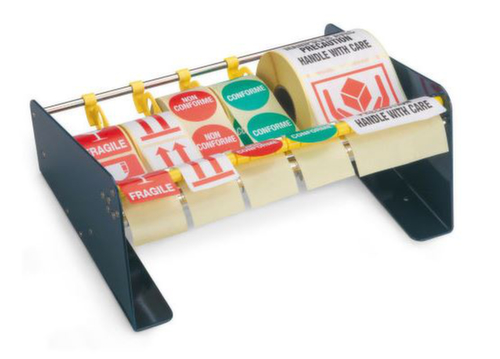 "longDescription": "<h2>Etikettenspender</h2><ul><li>Tischgerät aus Stahl mit Lackierung in blau</li><li>Mit Antirutsch-Belag für festen Stand</li><li>Spender trennt die Etiketten automatisch vom Kleber</li><li>Trennplatten ermöglichen gleichzeitige Benutzung mehrerer Etikettenrollen</li></ul>",