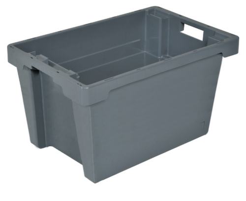 Aus schlagfestem Polyethylen in grau. Wände geschlossen, Boden geschlossen. Einfach zu tragen durch Durchfassgriffe. Durch eine 180°-Drehung ineinander schachtelbar. Lebensmittelgeeignet. Für Rollenbahnen geeignet. Temperaturbeständig von -40 °C bis +60 °C.