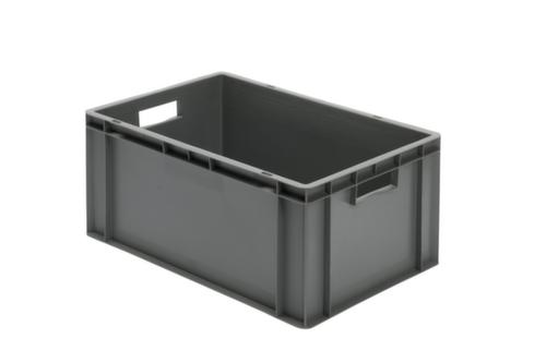 Maßlich auf die Europalette abgestimmt. Aus bruchsicherem Polypropylen in grau. Wände geschlossen, Boden geschlossen. Einfacher Transport durch Tragegriffe. Mehrfach stapelbar. Lebensmittelgeeignet. Für Rollenbahnen geeignet. Temperaturbeständig -20 °C bis +80 °C. Geeignet für verschiedene Stoffe, bitte anfragen.
