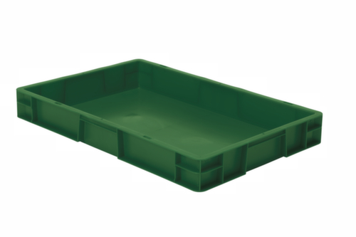 Maßlich auf die Europalette abgestimmt. Aus bruchsicherem Polypropylen in grün. Wände geschlossen, Boden geschlossen. Mehrfach stapelbar. Lebensmittelgeeignet. Für Rollenbahnen geeignet. Temperaturbeständig -20 °C bis +80 °C.