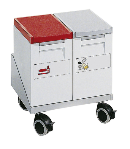 "metaDescription": "Fahrgestell für 2 Wertstoff-Sammelboxen, für 15 l Behälter - f. 2xWertstoff-Sammelbox 15l, Ladefl. LxB 400x315mm, Gestell hellgrau, 4 Lenkrollen",