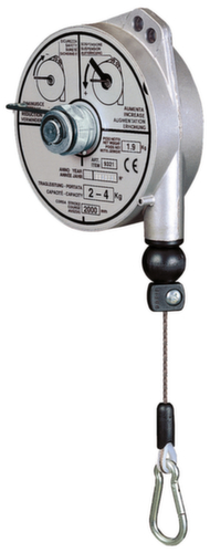 "longDescription": "<h2>Federzug</h2><strong>Traglast bis 14 kg</strong><br><ul><li>Geeignet für Werkzeuge, Kransteuerungen, Schleif- Polier- oder Nietmaschinen</li><li>Gehäuse aus Aluminium-Druckguss</li><li>Drahtseil aus Edelstahl</li><li>Reibungslose Büchsen und präzise Seilführung</li><li>Mit Sicherheitshaken</li><li>Zusätzliches Seil als Absturzsicherung</li><li>Feder mit Inbusschlüssel auf Gesamtgewicht einstellbar</li><li>Arretierung blockiert stufenweise beim Auszug, Aufhebung der Blockade durch ziehen am Seil</li></ul>",