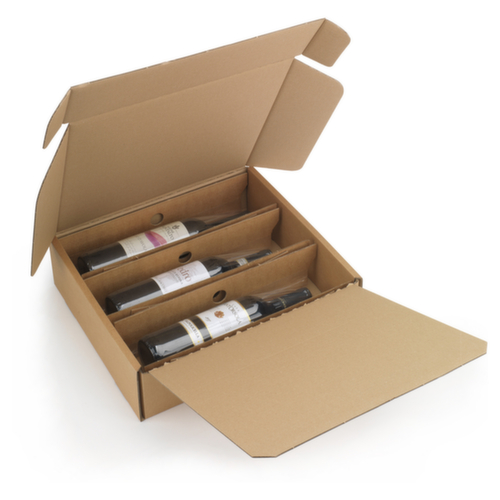 "longDescription": "<h2>Flaschenkarton mit Folienfixierung 3 Flaschen</h2><p>Mit der praktischen Flaschenverpackung können Sie 1, 2 oder 3 Flaschen sicher und ansprechend versenden. Eine 2-wellige Kartoneinlage und Seitenklappen schützen Ihre Flaschen vor Stößen, während eine 60µ starke PE-Folie die einzelnen Flaschen fixiert. Zum sicheren Verpacken legen Sie hierfür einfach nur die Flasche unter die Folie, falten die kurzen Seiten der Einlage, um die Folie zu spannen und legen die gefüllte Kartoneinlage in den Umkarton. Die Verpackung mit Kartoneinlage und Folienfixierung eignet sich für unterschiedlich geformte Flaschen mit einer Höhe von maximal 33 cm und einem Durchmesser von maximal 7,5 cm und ist somit für den Versand aller 0,75 Liter Flaschen einsetzbar. In unserem Sortiment finden Sie auch weitere Flaschen-Versandkartons, ganz nach Ihrem Bedarf!Alle Details im Überblick: - Material Umverpackung: 2-welliger Karton- Außenbeschichtung aus Kraftpapier- Flache und separate Anlieferung von Kartoneinlage und Umkarton</p><br>",