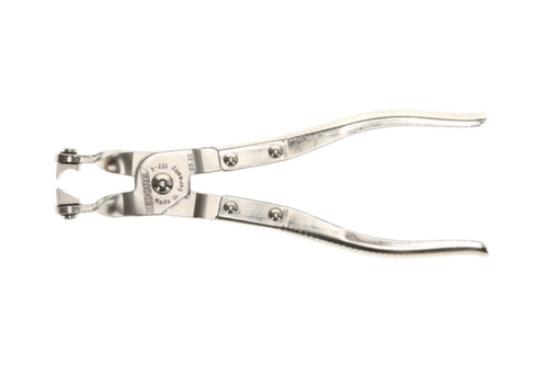 "longDescription": "Mit drehbaren Haltebolzen für CLIC-Schlauchschellen, Zum Öffnen oder Schließen einfach Zange 180° um ihre Längsachse drehen, Die drehbaren Haltebolzen ermöglichen den Einsatz auch an schwer zugänglichen Platzverhältnissen, da die Zange frontal sowie seitlich angesetzt werden kann Haltebolzen dafür in optimale Position drehen, CLIC-Schlauchschellen werden bei Gummi- und Silikonschläuchen verwendet (z. B. Automobilindustrie für Kraftstoff-, Öl- und Kühlsysteme), Aus Stahlblech, vernickelt<br>",