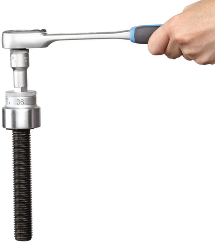 "longDescription": "Für handbetätigte Steckschlüsseleinsätze mit Durchgangsbohrung und Vierkantantrieb nach DIN 3120, ISO 1174, mit Kugelarretierung, Der Haltemagnet fixiert die Schrauben oder Muttern im Steckschlüsseleinsatz verliersicher, Einhandbedienung - Die Schraube oder Mutter kann sofort mit dem Steckschlüsseleinsatz eingedreht werden, Das magnetische Feld des Haltemagneten hält Schrauben und Muttern ohne direkten Kontakt zentrisch im Steckschlüsseleinsatz, Starker Permanentmagnet hält selbst große Schrauben fest, Besonders für Arbeiten in beengten Bauräumen geeignet, Vanadium-Stahl 31CrV3, verchromt<br>",