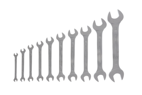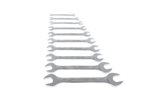 "longDescription": "Gängigste Größen im Set, Ausführung nach DIN 3110, ISO 3318, ISO 1085, ISO 10102, Mit flachen Köpfen, Blendfreie, mattierte Oberfläche, Maul: präzise auf exaktes Nennmaß geschliffen für optimale Kontaktflächen, Sicherer Griff durch schlanken Profilschaft, Überbelastung wird durch Verformung angezeigt, Hochwertige Industriequalität für harte Dauerbeanspruchung, Chrom-Vanadium-Stahl 31CrV3, verchromt<br>",