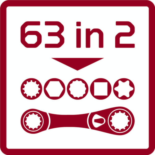 "longDescription": "63 in 2, Gerade Form, Mit Umschalthebel, Ratschenmechanismus mit 72 Zähnen, Rückschwenkwinkel 5°, Oberfläche matt-satiniert verchromt, Chrom-Vanadium-Stahl<br>",